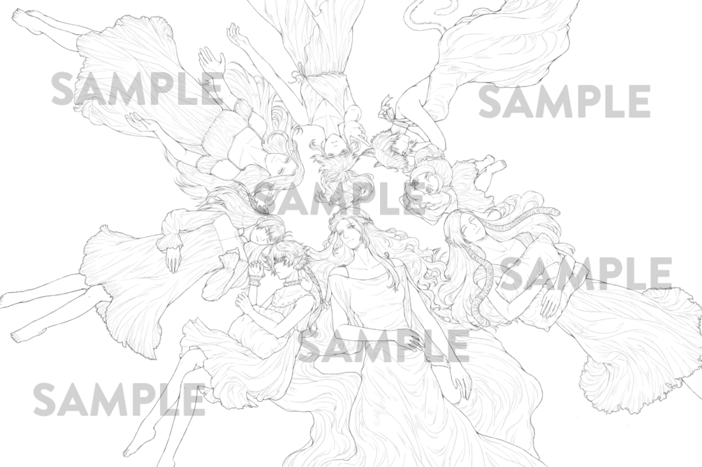 - A pack of 3 FFXIV artworks with Venat, Minfilia, Krile, Yshtola, Lyse, Ysayle, Ryne, and Alisaie in Lineart.
